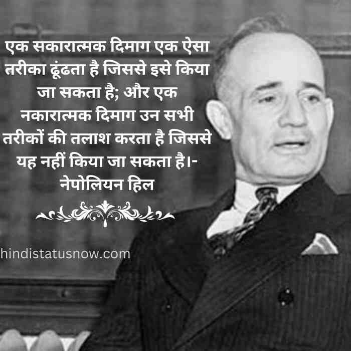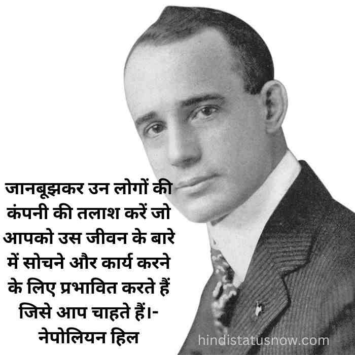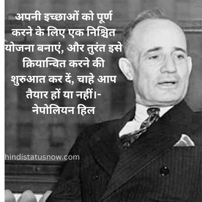 नेपोलियन हिल (Napoleon Hill) एक प्रसिद्ध लेखक और वक्ता थे, जिन्होंने “Think and Grow Rich” (सोचिए और अमीर बनिए) नामक पुस्तक लिखी थी। उन्होंने व्यापार, सफलता, स्वयं-विकास और जीवन के अन्य क्षेत्रों पर अपने दृष्टिकोण को साझा किया। नेपोलियन हिल की पुस्तक “Think and Grow Rich” दुनियाभर में बहुत प्रसिद्ध हुई और आज भी उनकी प्रेरणादायक विचारधारा काफी प्रभावशाली मानी जाती है।यही मोटिवेशन कोट्स motivational quotes of napoleon hill in hindi, Napoleon Hill Quotes In Hindi , नेपोलियन हिल के अनमोल विचार लेकर आए है। अपने मोबाइल पर स्टेटस रखिये और फ्रेंड्स को शेयर कीजिये।